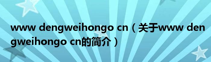 本文關(guān)于www dengweihongo cn的簡(jiǎn)介就講解完畢,希望對(duì)大家有所幫助。