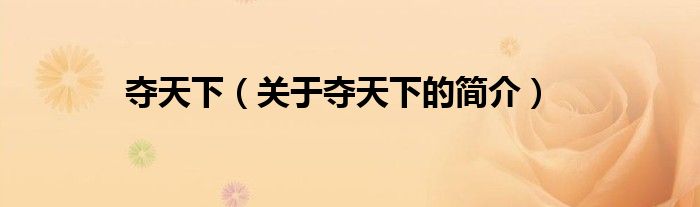 本文關于奪天下的簡介就講解完畢,希望對大家有所幫助。