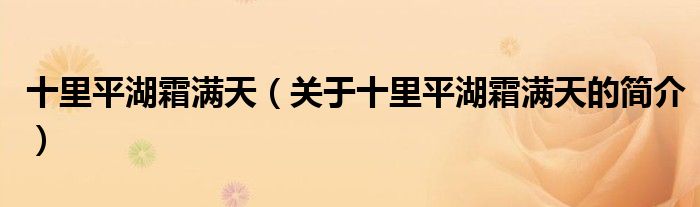 大家好,十里平湖霜滿天,關于十里平湖霜滿天的簡介很多人還不知道,現在讓我們一起來看看吧!