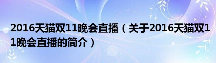 本文關(guān)于2016天貓雙11晚會(huì)直播的簡(jiǎn)介就講解完畢,希望對(duì)大家有所幫助。