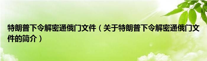 大家好,特朗普下令解密通俄門文件,關于特朗普下令解密通俄門文件的簡介很多人還不知道,現在讓我們一起來看看吧!