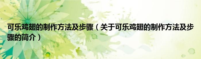 本文關于可樂雞翅的制作方法及步驟的簡介就講解完畢,希望對大家有所幫助。