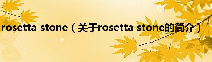 大家好,rosetta stone,關于rosetta stone的簡介很多人還不知道,現在讓我們一起來看看吧!