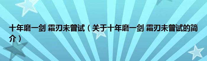 本文關(guān)于十年磨一劍 霜刃未曾試的簡(jiǎn)介就講解完畢,希望對(duì)大家有所幫助。