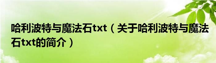 本文關(guān)于哈利波特與魔法石txt的簡介就講解完畢,希望對大家有所幫助。