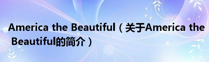 本文關于America the Beautiful的簡介就講解完畢,希望對大家有所幫助。