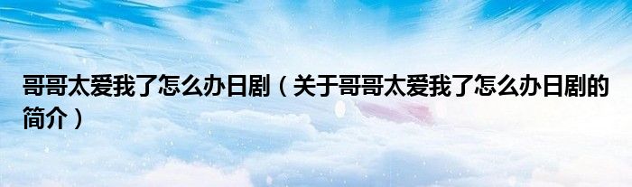 本文關于哥哥太愛我了怎么辦日劇的簡介就講解完畢,希望對大家有所幫助。