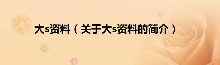 大家好,大s資料,關(guān)于大s資料的簡(jiǎn)介很多人還不知道,現(xiàn)在讓我們一起來(lái)看看吧!