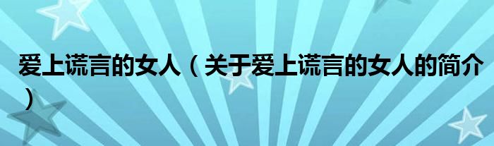 大家好,愛上謊言的女人,關于愛上謊言的女人的簡介很多人還不知道,現在讓我們一起來看看吧!