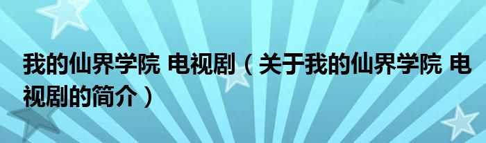 本文關(guān)于我的仙界學(xué)院 電視劇的簡(jiǎn)介就講解完畢,希望對(duì)大家有所幫助。