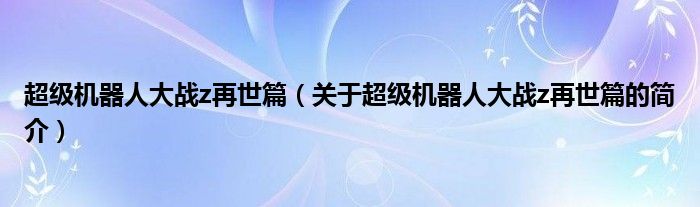 本文關于超級機器人大戰z再世篇的簡介就講解完畢,希望對大家有所幫助。