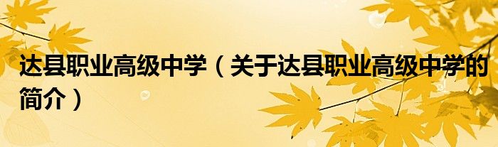 本文關于達縣職業高級中學的簡介就講解完畢,希望對大家有所幫助。