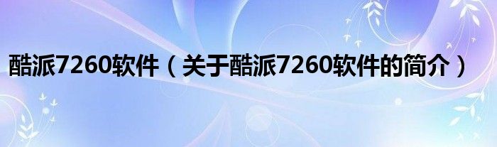 本文關于酷派7260軟件的簡介就講解完畢,希望對大家有所幫助。