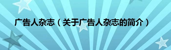 本文關于廣告人雜志的簡介就講解完畢,希望對大家有所幫助。