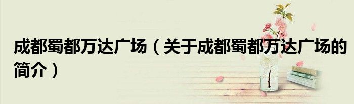 大家好,成都蜀都萬達廣場,關于成都蜀都萬達廣場的簡介很多人還不知道,現在讓我們一起來看看吧!