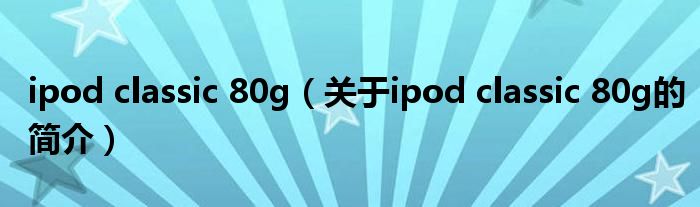 本文關于ipod classic 80g的簡介就講解完畢,希望對大家有所幫助。