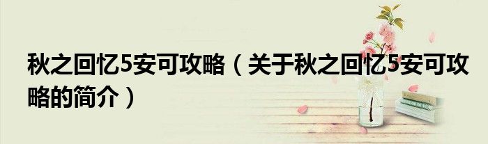 本文關(guān)于秋之回憶5安可攻略的簡介就講解完畢,希望對大家有所幫助。