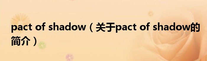 本文關于pact of shadow的簡介就講解完畢,希望對大家有所幫助。