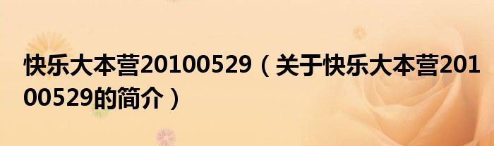 本文關(guān)于快樂大本營20100529的簡介就講解完畢,希望對大家有所幫助。