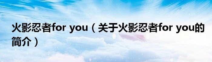 本文關于火影忍者for you的簡介就講解完畢,希望對大家有所幫助。