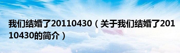 大家好,我們結婚了20110430,關于我們結婚了20110430的簡介很多人還不知道,現在讓我們一起來看看吧!