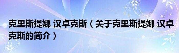 本文關于克里斯提娜 漢卓克斯的簡介就講解完畢,希望對大家有所幫助。