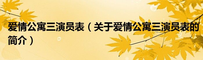 本文關于愛情公寓三演員表的簡介就講解完畢,希望對大家有所幫助。