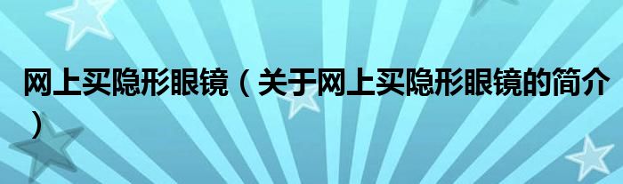 本文關于網上買隱形眼鏡的簡介就講解完畢,希望對大家有所幫助。