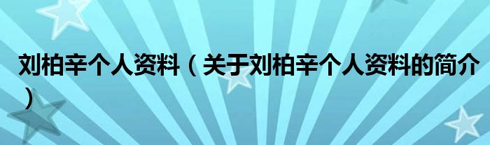 大家好,劉柏辛個人資料,關于劉柏辛個人資料的簡介很多人還不知道,現(xiàn)在讓我們一起來看看吧!