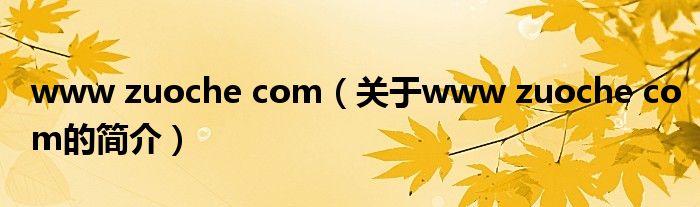 大家好,www zuoche com,關于www zuoche com的簡介很多人還不知道,現在讓我們一起來看看吧!