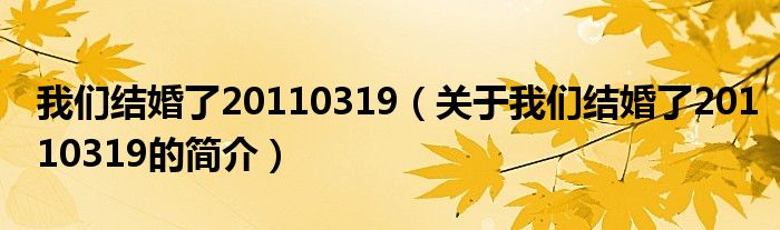 本文關于我們結婚了20110319的簡介就講解完畢,希望對大家有所幫助。