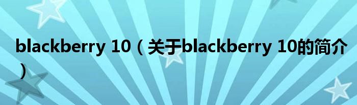 本文關(guān)于blackberry 10的簡(jiǎn)介就講解完畢,希望對(duì)大家有所幫助。
