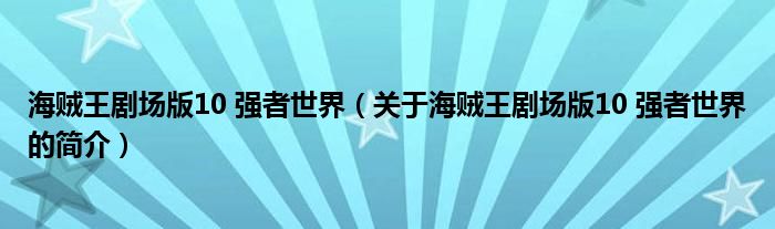 本文關于海賊王劇場版10 強者世界的簡介就講解完畢,希望對大家有所幫助。