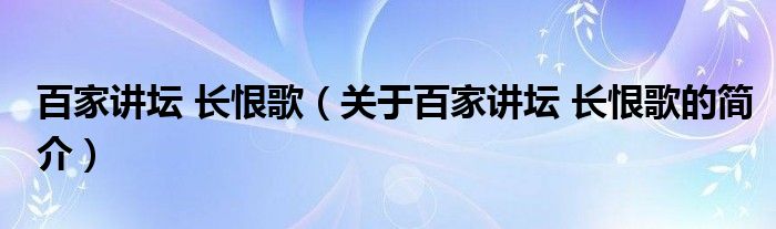 本文關(guān)于百家講壇 長恨歌的簡介就講解完畢,希望對大家有所幫助。