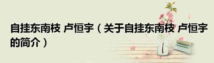 本文關于自掛東南枝 盧恒宇的簡介就講解完畢,希望對大家有所幫助。