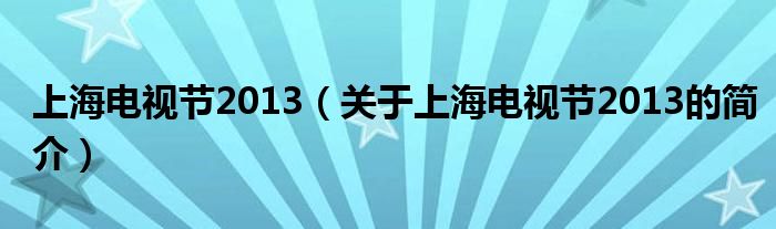 本文關于上海電視節(jié)2013的簡介就講解完畢,希望對大家有所幫助。
