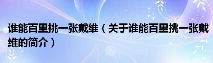 大家好,誰能百里挑一張戴維,關(guān)于誰能百里挑一張戴維的簡介很多人還不知道,現(xiàn)在讓我們一起來看看吧!