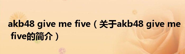 大家好,akb48 give me five,關于akb48 give me five的簡介很多人還不知道,現在讓我們一起來看看吧!