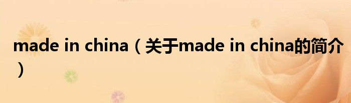 大家好,made in china,關于made in china的簡介很多人還不知道,現(xiàn)在讓我們一起來看看吧!