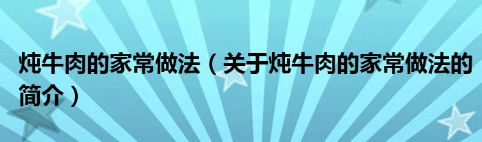 本文關(guān)于燉牛肉的家常做法的簡介就講解完畢,希望對大家有所幫助。