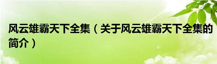 本文關于風云雄霸天下全集的簡介就講解完畢,希望對大家有所幫助。