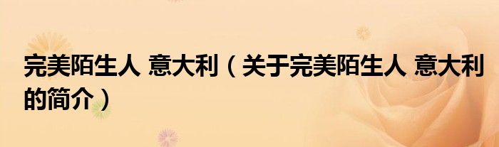 本文關(guān)于完美陌生人 意大利的簡(jiǎn)介就講解完畢,希望對(duì)大家有所幫助。