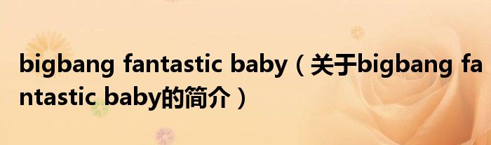 本文關(guān)于bigbang fantastic baby的簡(jiǎn)介就講解完畢,希望對(duì)大家有所幫助。