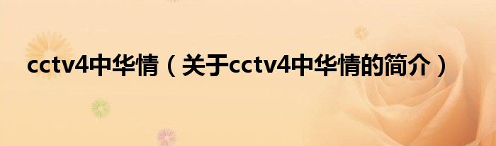 本文關于cctv4中華情的簡介就講解完畢,希望對大家有所幫助。