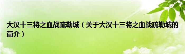 本文關于大漢十三將之血戰疏勒城的簡介就講解完畢,希望對大家有所幫助。