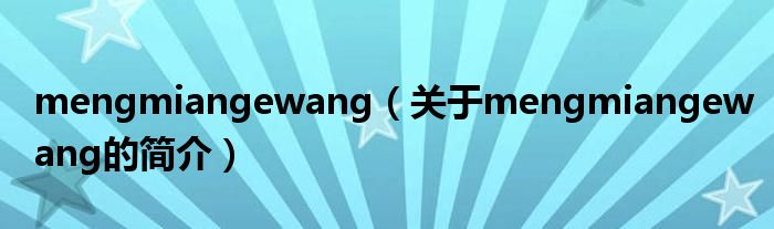 大家好,mengmiangewang,關于mengmiangewang的簡介很多人還不知道,現(xiàn)在讓我們一起來看看吧!