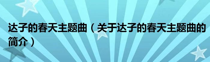 本文關于達子的春天主題曲的簡介就講解完畢,希望對大家有所幫助。