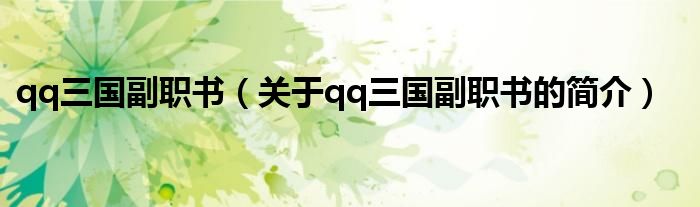 本文關于qq三國副職書的簡介就講解完畢,希望對大家有所幫助。