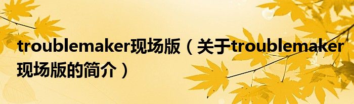 本文關于troublemaker現場版的簡介就講解完畢,希望對大家有所幫助。