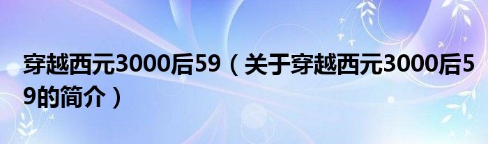 本文關(guān)于穿越西元3000后59的簡介就講解完畢,希望對大家有所幫助。